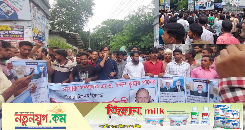 শেরপুরে আওয়ামী লীগ নেতা চন্দন কুমার পালকে জামিন দেয়ার প্রতিবাদে আদালত চত্বরে অবস্থান