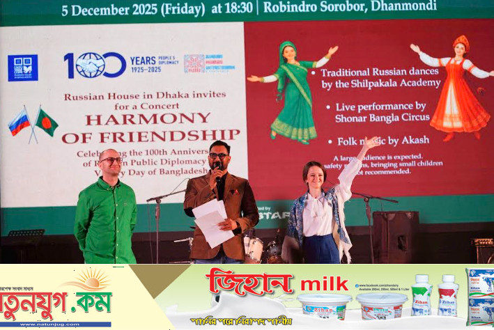 রুশ জনগণের গণ-কূটনীতির শতবর্ষ এবং বাংলাদেশের বিজয় দিবস উপলক্ষে ঢাকায় রাশিয়ান হাউসের আয়োজনে এক বর্ণাঢ্য সাংস্কৃতিক কনসার্ট অনুষ্ঠিত হয়েছে। শুক্রবার সন্ধ্যায় ঢাকার মুক্তমঞ্চ রবীন্দ্র সরোবরে জমকালো এই আয়োজনে প্রায় ১৩ হাজারের বেশি দর্শক অংশগ্রহণ করেন।
