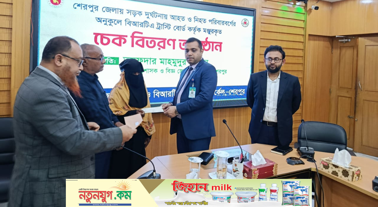 শেরপুরে সড়ক দুর্ঘটনায় ৮ হতাহতের পরিবার পেলো বিআরটিএ’র ৩৮ লাখ টাকার আর্থিক সহায়তা