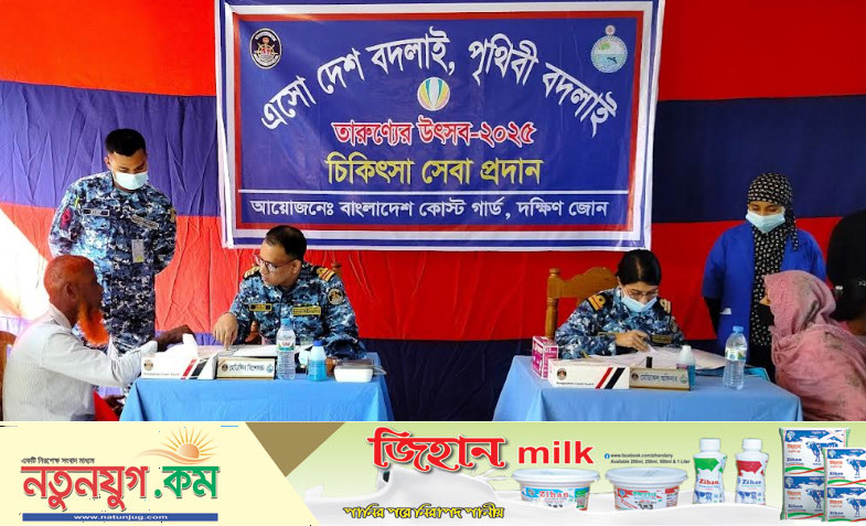 ভোলায় কোস্টগার্ডের আয়োজনে 'তারুণ্যের উৎসব' উপলক্ষে বিনামূল্যে চিকিৎসা সেবা ও ঔষধ বিতরণ