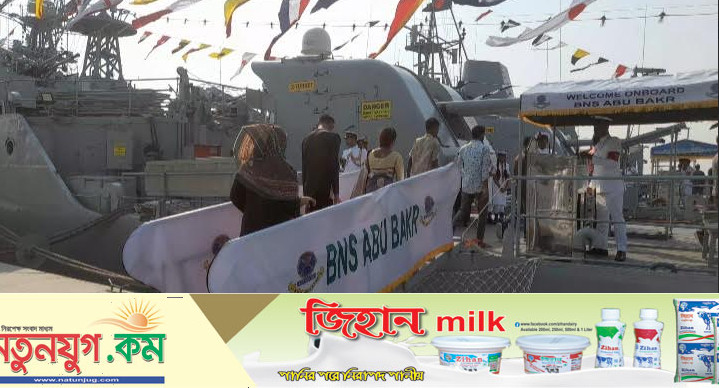 মোংলায় নৌবাহিনীর যুদ্ধজাহাজ 'আবু বকর' ঘুরে দেখলেন দর্শনার্থীরা