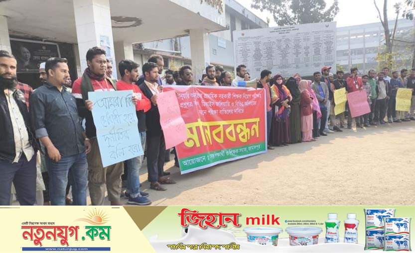 প্রাথমিক শিক্ষক নিয়োগ পরীক্ষা বাতিলের দাবিতে মানববন্ধন