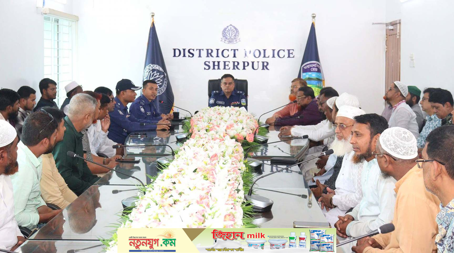আসন্ন ঈদুল ফিতর উপলক্ষে শেরপুর জেলা পুলিশের উদ্যােগে জেলার সার্বিক আইন-শৃঙ্খলা পরিস্থিতি স্বাভাবিক ও শান্তিপূর্ণ রাখতে বিভিন্ন ব্যবসায়ী সমিতি ও আর্থিক প্রতিষ্ঠানের প্রতিনিধিদের সাথে মতবিনিময় সভা অনুষ্ঠিত হয়েছে।