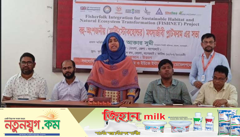 ফিশনেট প্রকল্পের আওতায় বেসরকারী উন্নয়ন সংস্থা ‘উত্তরন’ এর বাস্তবায়নে ওসান গ্রান্টস প্রোগ্রাম এবং ইউকে ইন্টারন্যাশনাল ডেভেলপমেন্টের আর্থিক সহেযোগীতায় ১০ মার্চ মঙ্গলবার সকাল ১০ টায় সরকারি বিভিন্ন দপ্তরের সম্মানিত অফিসারবৃন্দ, জনপ্রতিনিধি এবং বিভিন্ন শ্রেনী পেশার মৎস্যজীবী নেটওয়ার্ক এর প্রতিনিধিদের সমন্বয়ে মোংলা উপজেলায় বহু-অংশীজনীয় ( মাল্টি-স্টেকহোল্ডার ) মৎস্যজীবী প্লাটফর্ম এর একটি সভা অনুষ্ঠিত হয়।
