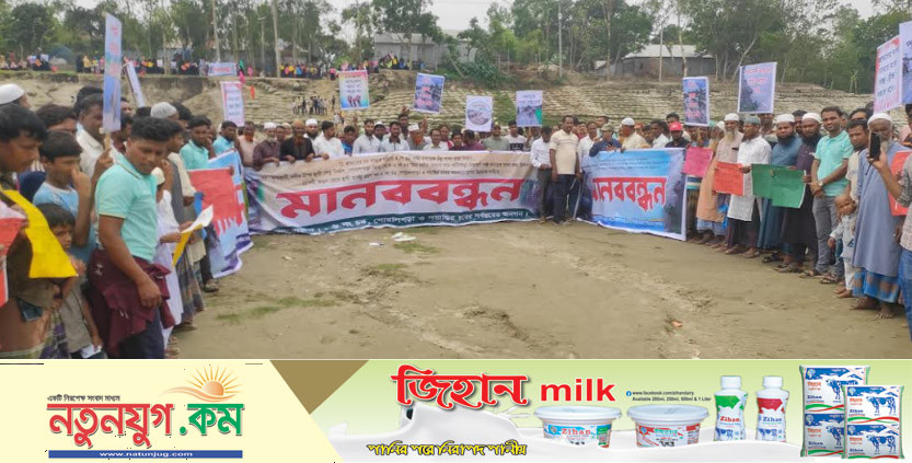 শেরপুরের ব্রীজ ও রাস্তার দাবীতে মানব বন্ধন করলো চরবাসী