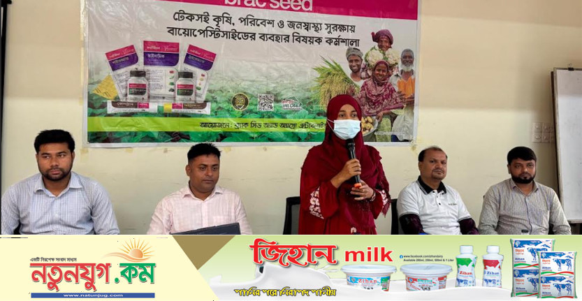 ব্র্যাক সিডের টেরিটরি সেলস অফিসার মেহেদী হাসানের সঞ্চালনায় কর্মশালায় ব্র্যাক সিডের পরিবেশকবৃন্দ, স্থানীয় বীজ ব্যবসায়ী এবং অর্ধশতাধিক কৃষক অংশগ্রহণ করেন। যাদের উদ্দেশ্যে বক্তারা বলেন, বায়োপেস্টিসাইড ব্যবহারের মাধ্যমে পরিবেশের ভারসাম্য রক্ষার পাশাপাশি মানবস্বাস্থ্যের ঝুঁকি হ্রাস করা সম্ভব। কৃষিতে রাসায়নিক নির্ভরতা কমিয়ে পরিবেশবান্ধব উৎপাদন নিশ্চিত করার ওপর গুরুত্বারোপ করেন তারা। কর্মশালায় অংশগ্রহণকারী কৃষকদের বায়োপেস্টিসাইডের ব্যাবহারিক দিক, সঠিক প্রয়োগ পদ্ধতি এবং ফসলের নিরাপত্তা নিশ্চিত করার বিষয়ে হাতে-কলমে প্রশিক্ষণ প্রদান করা হয়।